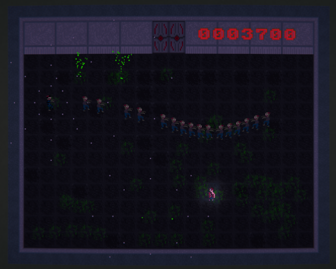 The game is a fast-paced twin-stick shooter where you control a lone survivor trapped in a decaying zone overrun by endless hordes of zombies. Your goal is to survive each level by eliminating all enemies while constantly moving and managing the pressure of being surrounded.